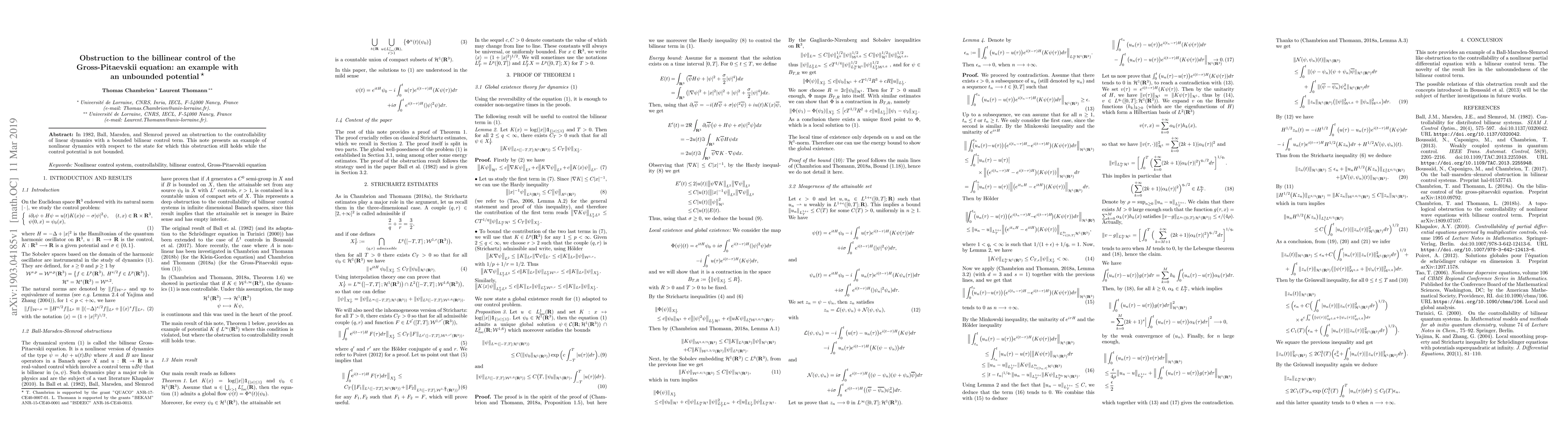 In 1982, Ball, Marsden, and Slemrod proved an obstruction to the controllability of linear dynamics with a bounded bilinear control term. This note presents an example of nonlinear dynamics with respect to the state for which this obstruction still holds while the control potential is not bounded.