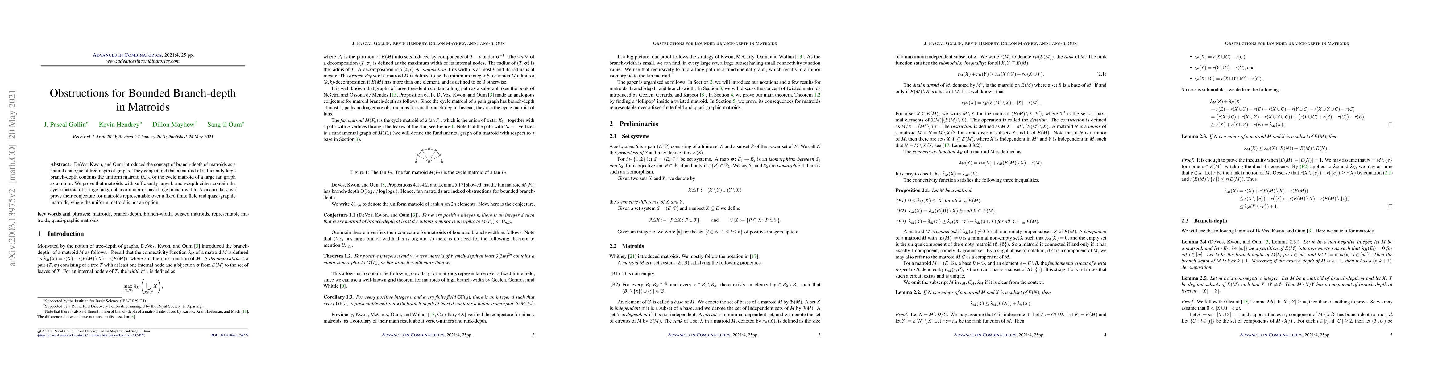The paper proves that matroids with sufficiently large branch-depth contain either the cycle matroid of a large fan graph as a minor or exhibit large branch-width, supporting a conjecture on the structural properties of high branch-depth matroids. This result also confirms the conjecture for matroids representable over a fixed finite field and quasi-graphic matroids.