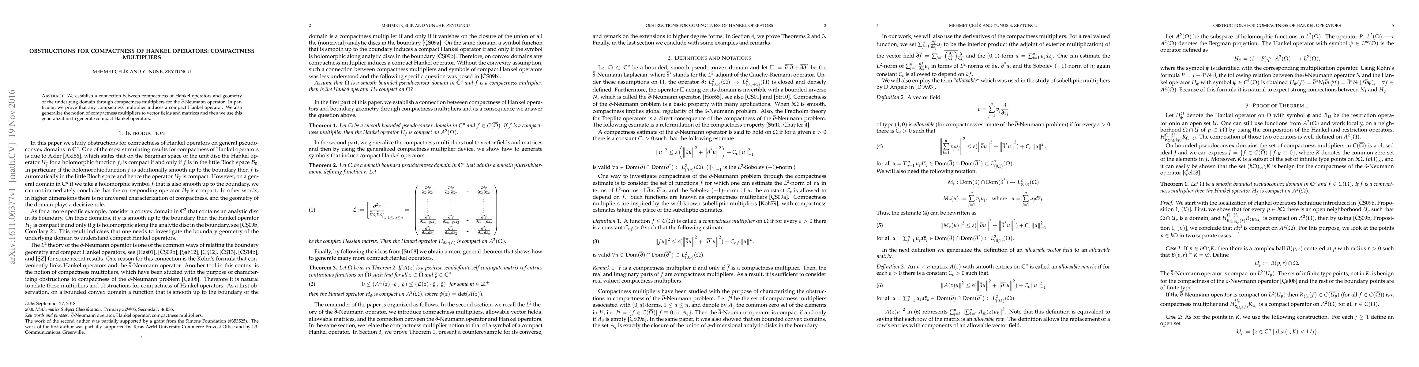 This paper connects the compactness of Hankel operators to the geometry of the underlying domain via compactness multipliers for the $\overline{\partial}$-Neumann operator. It proves that any such multiplier induces a compact Hankel operator and extends this concept to vector fields and matrices to generate compact Hankel operators.