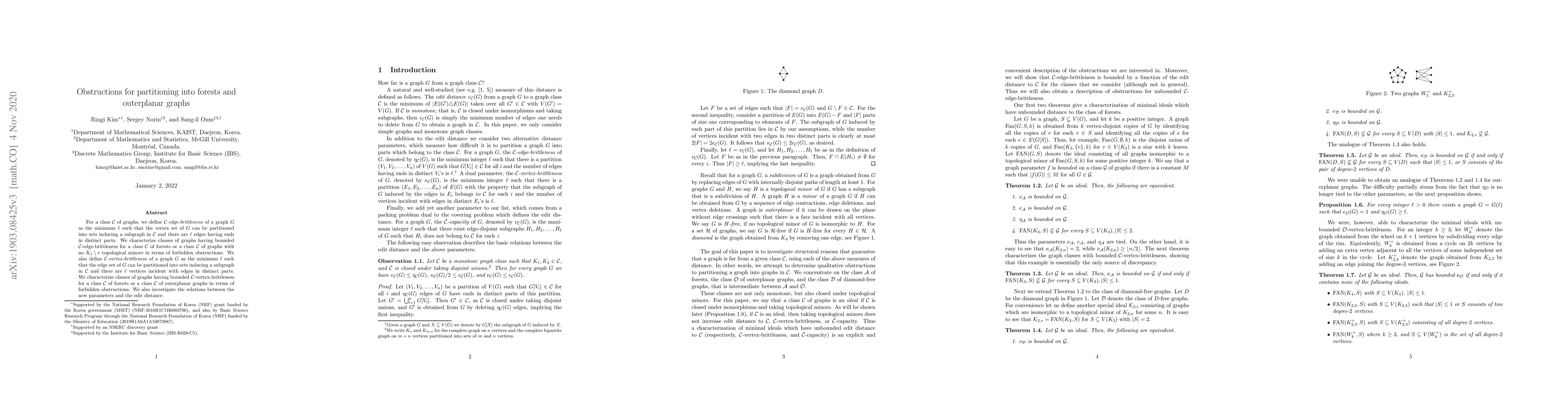 This paper characterizes graph classes with bounded brittleness for partitioning into forests or outerplanar graphs in terms of forbidden obstructions. It introduces $\mathcal C$-edge-brittleness and $\mathcal C$-vertex-brittleness, and explores their relations to edit distance.
