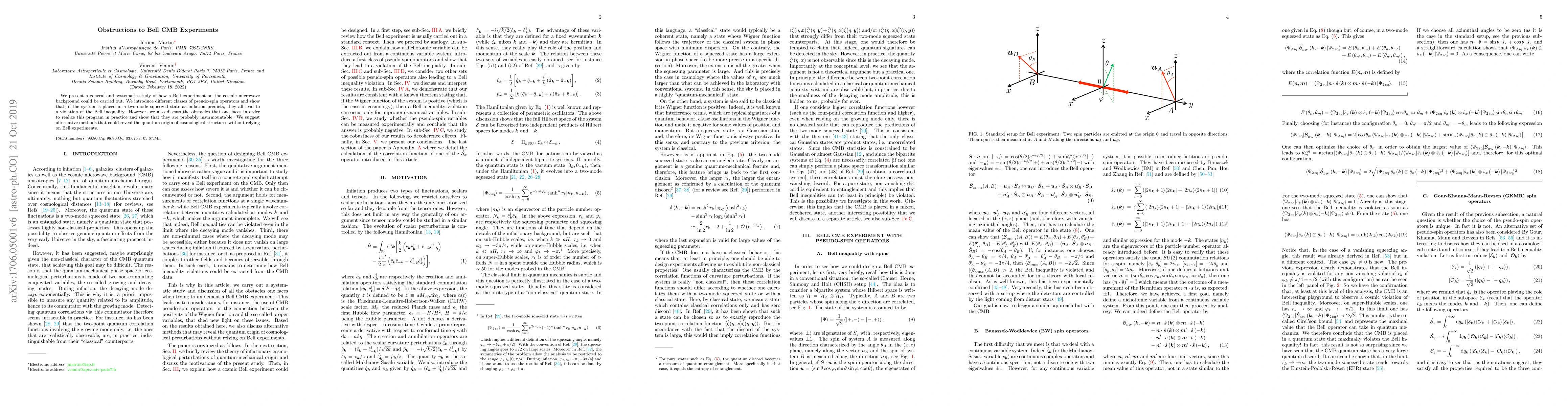 We present a general and systematic study of how a Bell experiment on the cosmic microwave background could be carried out. We introduce different classes of pseudo-spin operators and show that, if the system is placed in a two-mode squeezed state as inflation predicts, they all lead to a violation of the Bell inequality. However, we also discuss the obstacles that one faces in order to realize this program in practice and show that they are probably insurmountable. We suggest alternative methods that would reveal the quantum origin of cosmological structures without relying on Bell experiments.