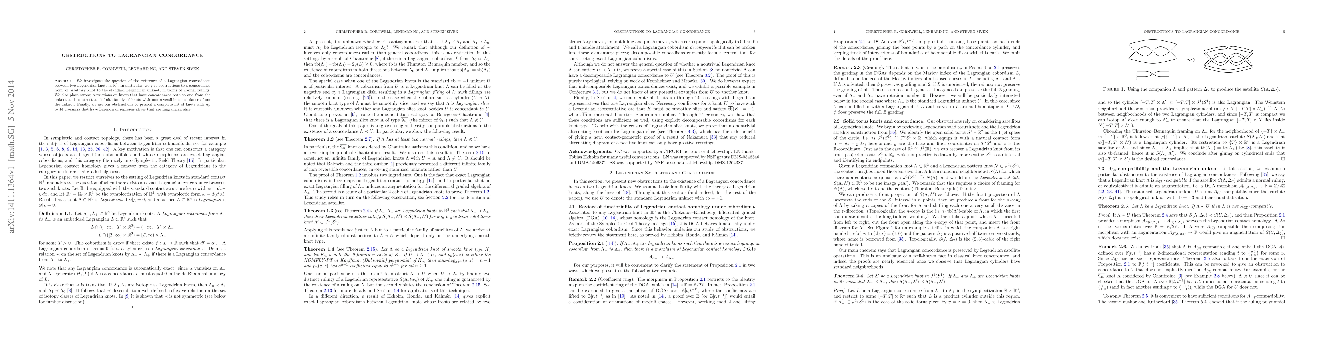 We investigate the question of the existence of a Lagrangian concordance between two Legendrian knots in $\mathbb{R}^3$. In particular, we give obstructions to a concordance from an arbitrary knot to the standard Legendrian unknot, in terms of normal rulings. We also place strong restrictions on knots that have concordances both to and from the unknot and construct an infinite family of knots with non-reversible concordances from the unknot. Finally, we use our obstructions to present a complete list of knots with up to 14 crossings that have Legendrian representatives that are Lagrangian slice.