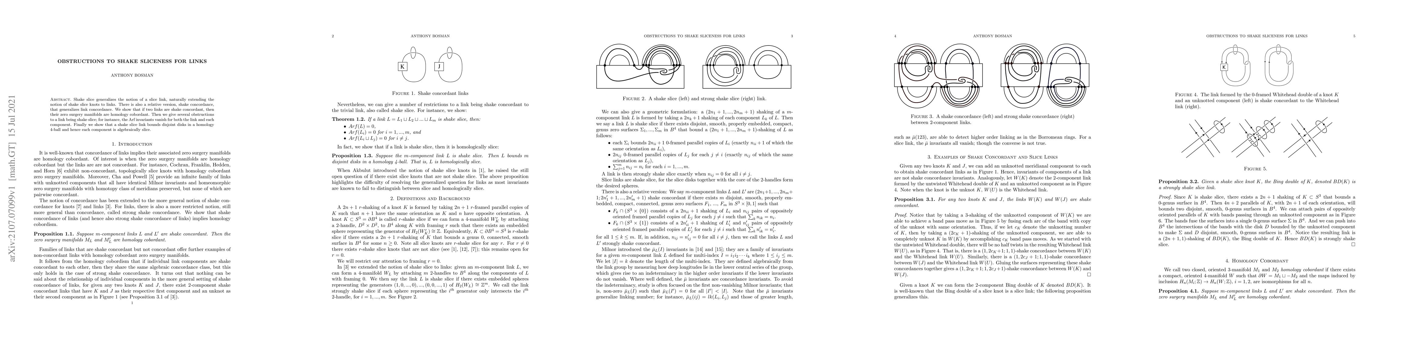 This paper investigates the concept of shake sliceness for links, demonstrating that if two links are shake concordant, their zero surgery manifolds are homology cobordant. It provides several obstructions to a link being shake slice, such as vanishing Arf invariants, and concludes that a shake slice link bounds disjoint disks in a homology 4-ball, indicating algebraic sliceness for each component.