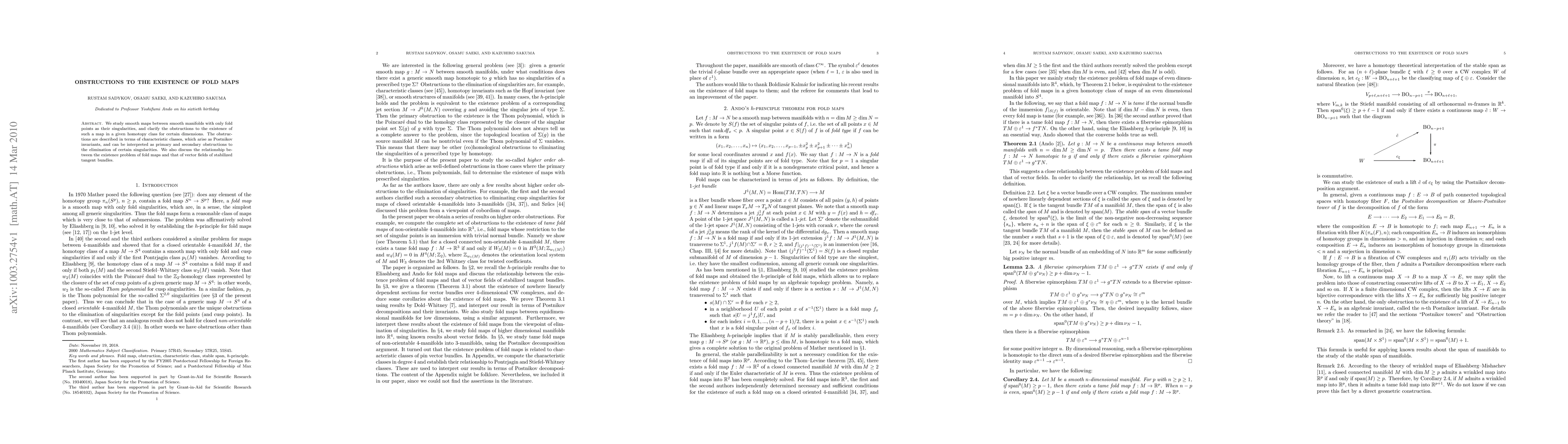 This paper investigates smooth maps with fold singularities and identifies obstructions to their existence within specific homotopy classes, using characteristic classes and Postnikov invariants. It also explores connections between fold maps and the existence of vector fields in stabilized tangent bundles.