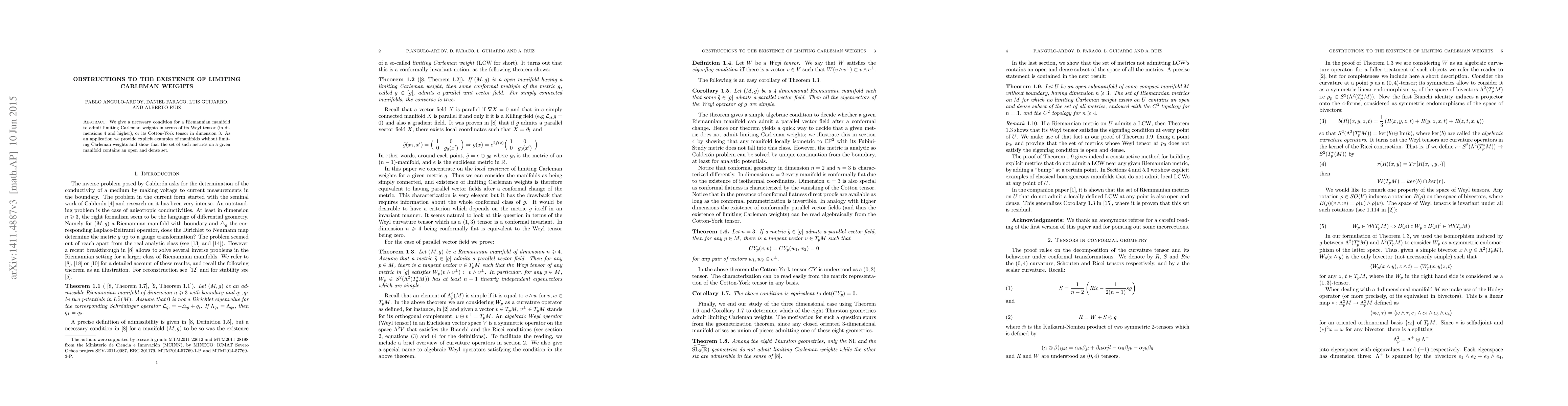 This paper provides a necessary condition for a Riemannian manifold to admit limiting Carleman weights, showing that some manifolds do not have such weights, and demonstrating an open and dense set of metrics without them.