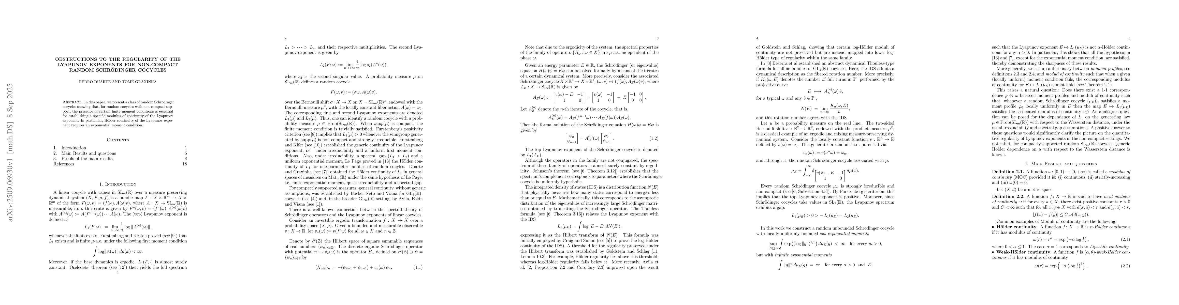 In this paper, we present a class of random Schr\"odinger cocycles showing that, for random cocycles with non-compact support, the presence of certain finite moment conditions is essential for establishing a specific modulus of continuity of the Lyapunov exponent. In particular, H\"older continuity of the Lyapunov exponent requires an exponential moment condition.
