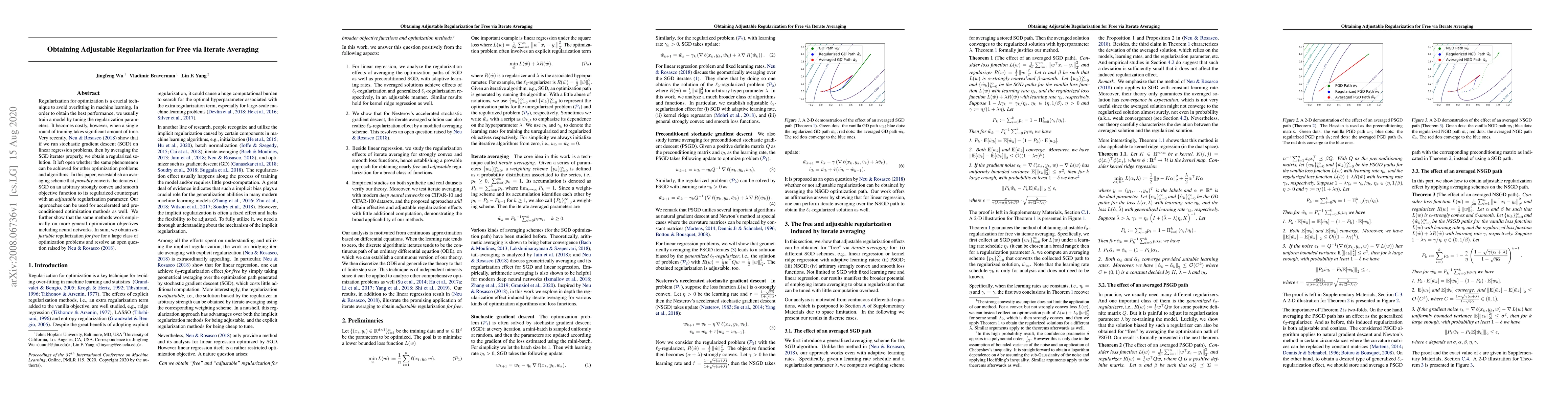 This paper proposes an averaging scheme that converts the iterates of stochastic gradient descent (SGD) on strongly convex and smooth functions into a regularized solution, providing adjustable regularization without additional cost. This method extends to accelerated and preconditioned optimization methods and works empirically on neural networks.