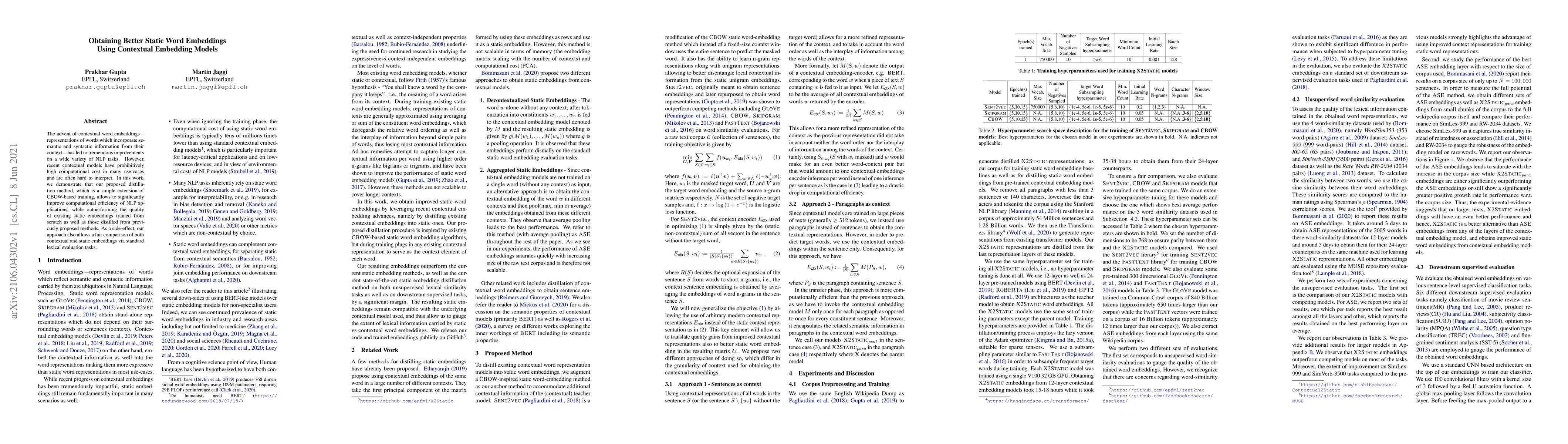 This paper proposes a distillation method to improve static word embeddings by leveraging contextual embedding models, achieving better performance than traditional static embeddings while significantly reducing computational costs and enhancing interpretability. The method also facilitates a fair comparison between contextual and static embeddings through standard lexical evaluation tasks.
