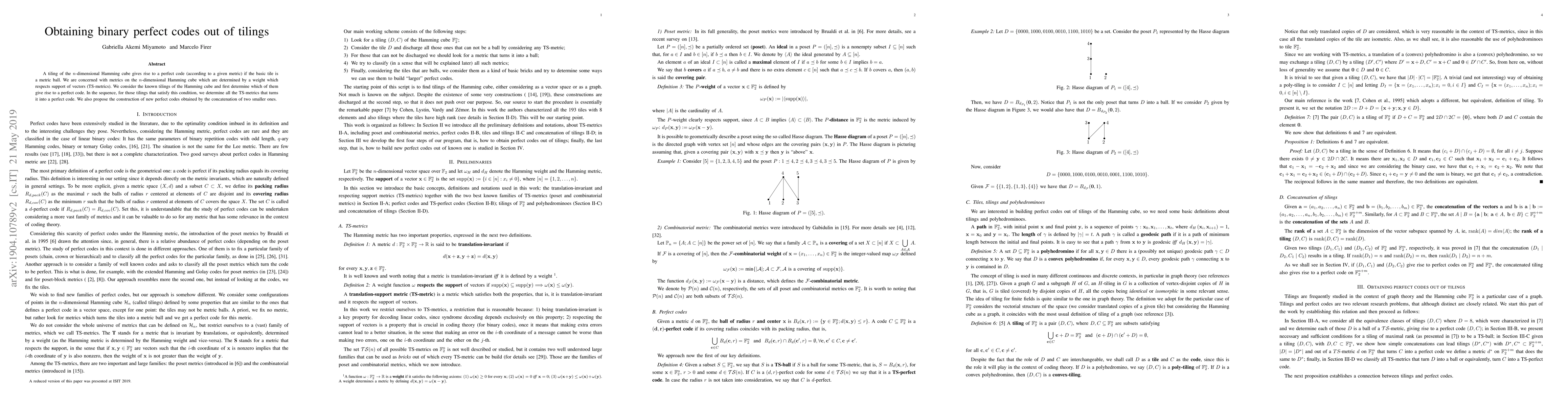 This paper explores how tilings of the $n$-dimensional Hamming cube can yield perfect codes under TS-metrics, identifies existing tilings that meet this criterion, and determines the specific TS-metrics that make them perfect codes. It also proposes a method for constructing new perfect codes by concatenating smaller ones.