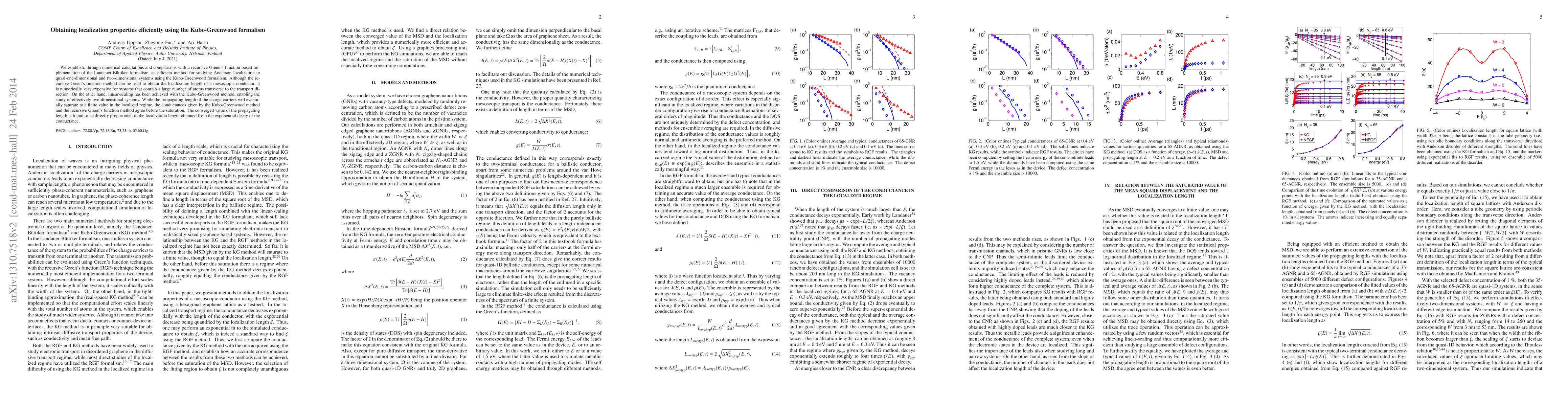 The paper presents a novel, efficient method for calculating localization properties using the Kubo-Greenwood formalism, which scales linearly with system size and agrees with recursive Green's function results in the non-saturated regime.