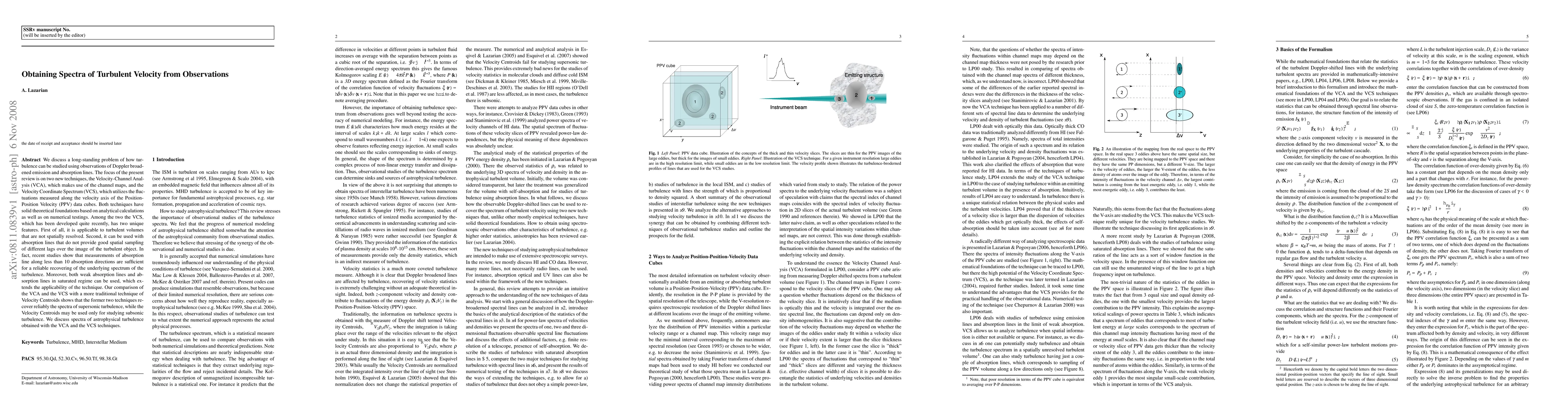 This paper reviews two new techniques for studying turbulence using Doppler broadened emission and absorption lines: Velocity-Channel Analysis (VCA) and Velocity Coordinate Spectrum (VCS). The VCS, in particular, is effective for unresolved turbulent volumes and can utilize weak absorption lines, offering reliable recovery of turbulence spectra. Comparatively, VCA and VCS outperform traditional Velocity Centroids, especially for supersonic turbulence.