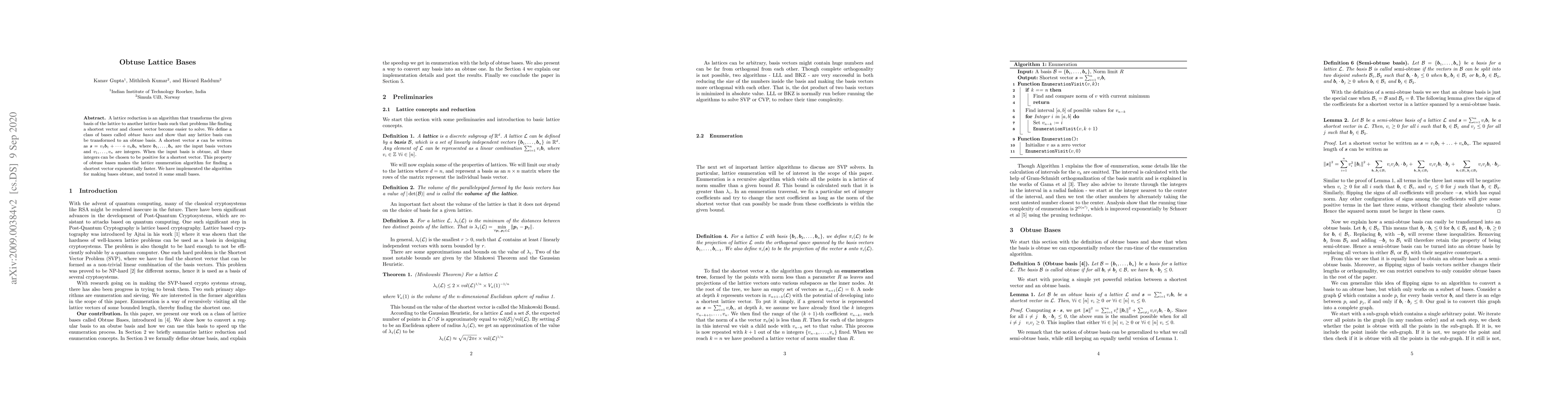 This paper introduces obtuse lattice bases, demonstrating that any lattice basis can be transformed into an obtuse basis, which simplifies the shortest vector problem by ensuring all coefficients are positive. The authors implemented and tested an algorithm to convert bases to obtuse, showing it can significantly speed up lattice enumeration.