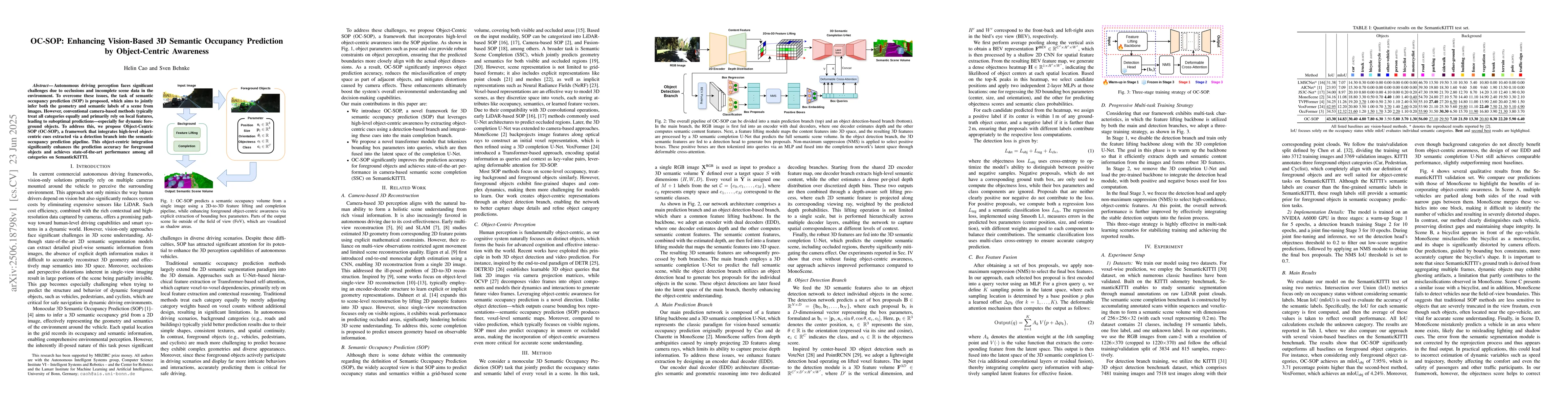Autonomous driving perception faces significant challenges due to occlusions and incomplete scene data in the environment. To overcome these issues, the task of semantic occupancy prediction (SOP) is proposed, which aims to jointly infer both the geometry and semantic labels of a scene from images. However, conventional camera-based methods typically treat all categories equally and primarily rely on local features, leading to suboptimal predictions, especially for dynamic foreground objects. To address this, we propose Object-Centric SOP (OC-SOP), a framework that integrates high-level object-centric cues extracted via a detection branch into the semantic occupancy prediction pipeline. This object-centric integration significantly enhances the prediction accuracy for foreground objects and achieves state-of-the-art performance among all categories on SemanticKITTI.