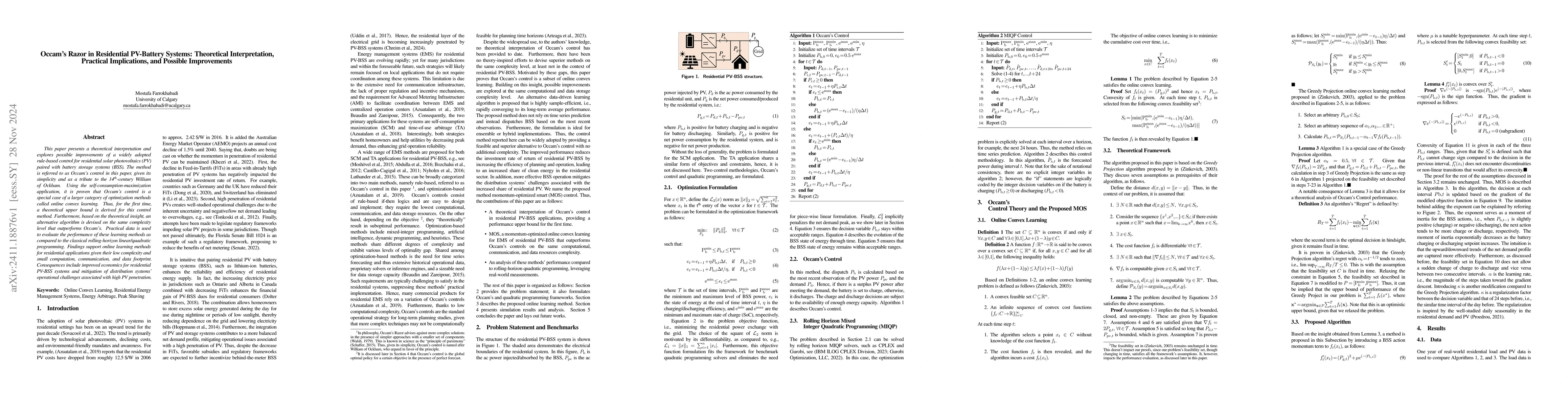 This paper theoretically analyzes a simple control method for residential solar PV paired with battery storage systems, called Occam's control, and shows it falls under online convex learning. An alternative algorithm, based on these insights, is proposed and found to outperform Occam's control, suggesting improved economic benefits and operational efficiencies for residential PV-battery systems.