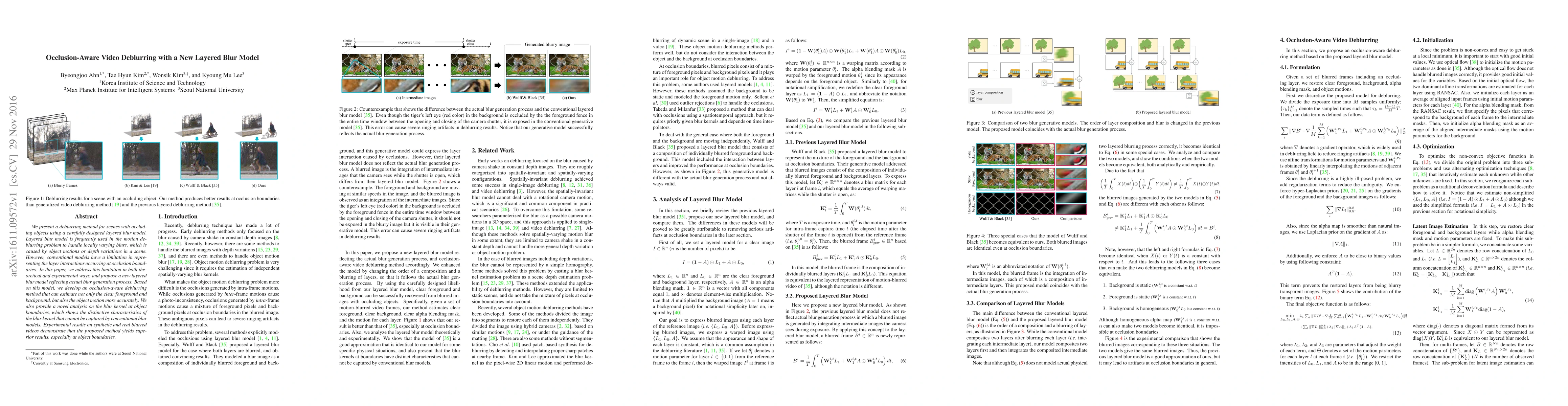This paper introduces a new layered blur model to address occlusions in video deblurring, enhancing the representation of blur interactions at object boundaries. The proposed occlusion-aware deblurring method, based on this model, achieves more accurate estimation of clear foreground, background, and object motion, outperforming conventional methods, as demonstrated by experimental results.