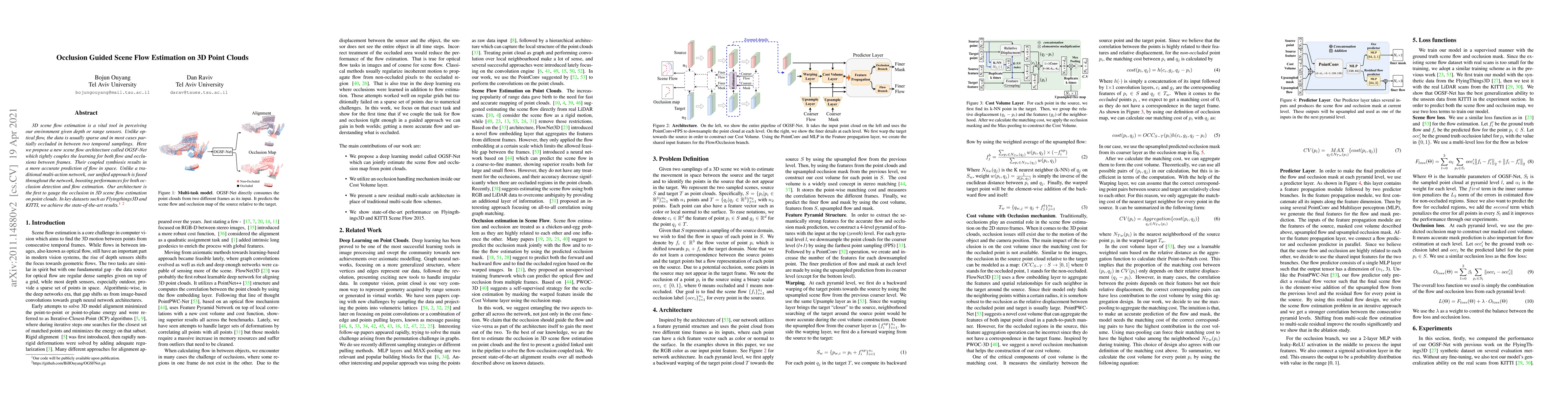 This paper introduces OGSF-Net, a novel architecture for 3D scene flow estimation on sparse and partially occluded point clouds, which integrates learning for both flow and occlusion detection. The unified approach outperforms traditional methods, achieving state-of-the-art results on datasets like Flyingthings3D and KITTI.