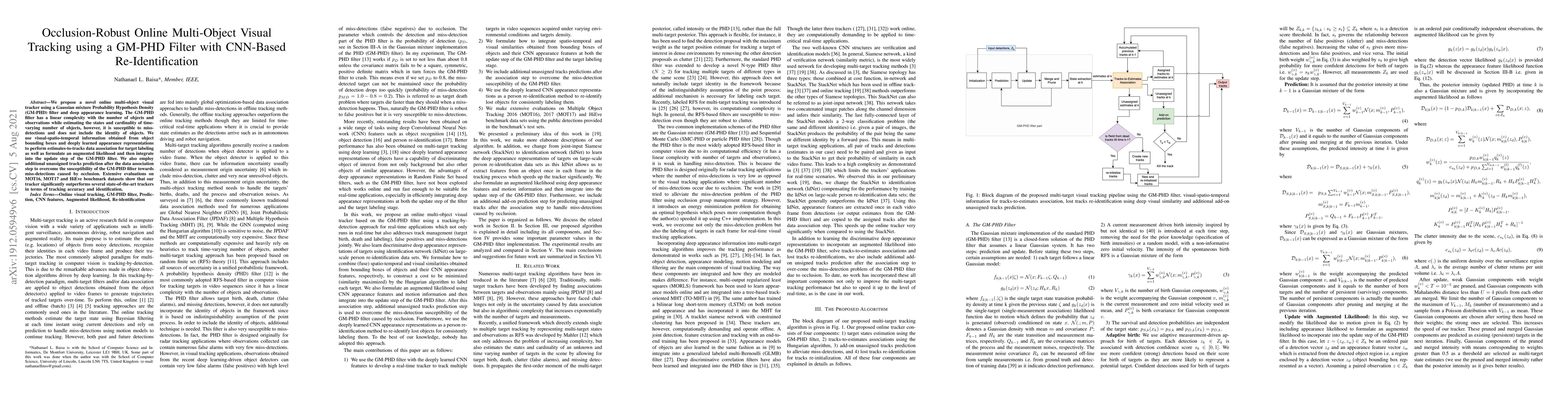 This paper presents an occlusion-robust online multi-object tracker using a GM-PHD filter enhanced with CNN-based re-identification, achieving superior tracking accuracy and identification over state-of-the-art methods by integrating visual-spatio-temporal information and handling miss-detections due to occlusion.