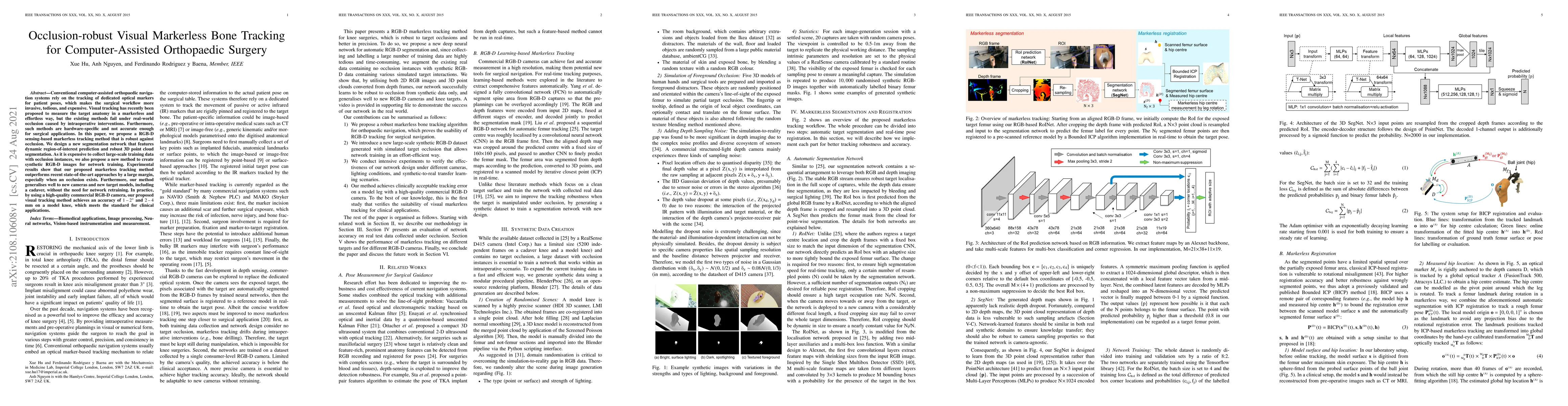 Researchers developed a markerless bone tracking method that can accurately track patient poses in computer-assisted orthopaedic surgery even when anatomical structures are occluded.