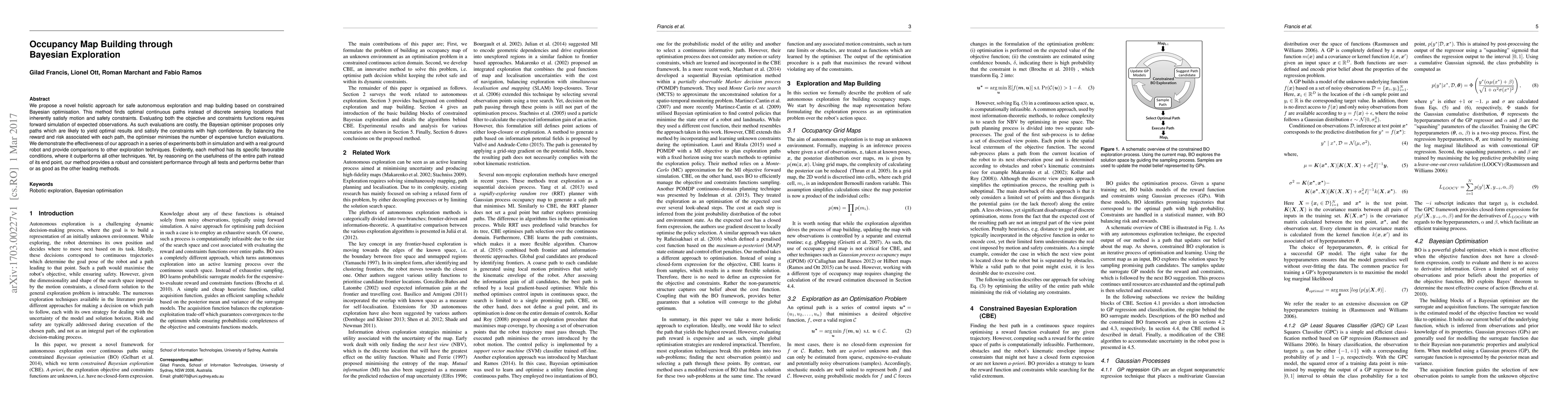 A novel approach for autonomous exploration and map building uses Bayesian optimization to find safe and optimal continuous paths, balancing reward and risk to minimize costly function evaluations.