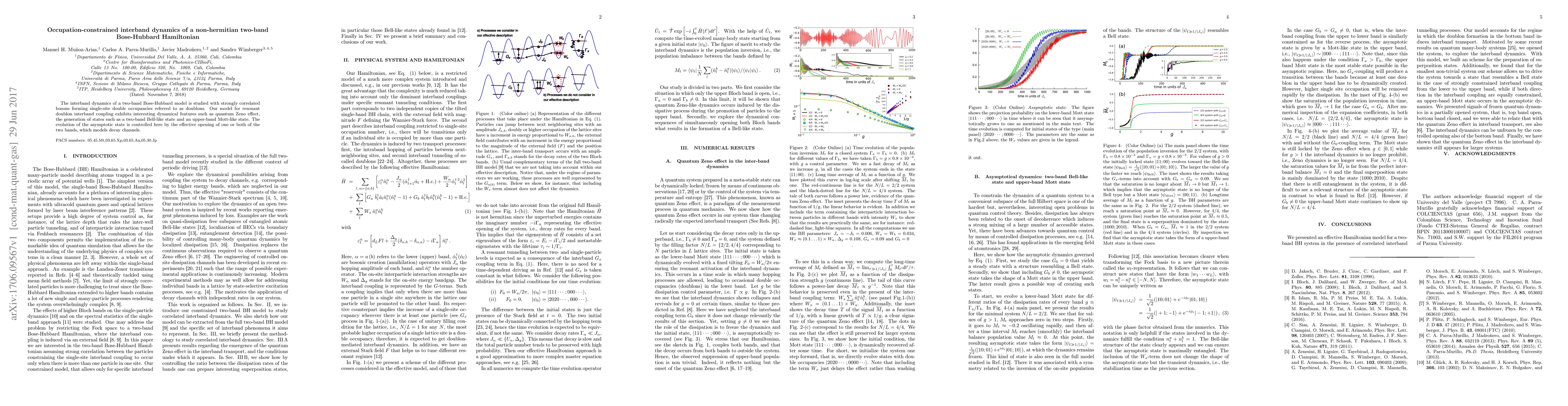This paper investigates the interband dynamics of a two-band Bose-Hubbard model with strongly correlated bosons, focusing on doublon formation and resonant interband coupling. It reveals phenomena like the quantum Zeno effect and the generation of unique states, with dynamics controlled by the opening of one or both bands.