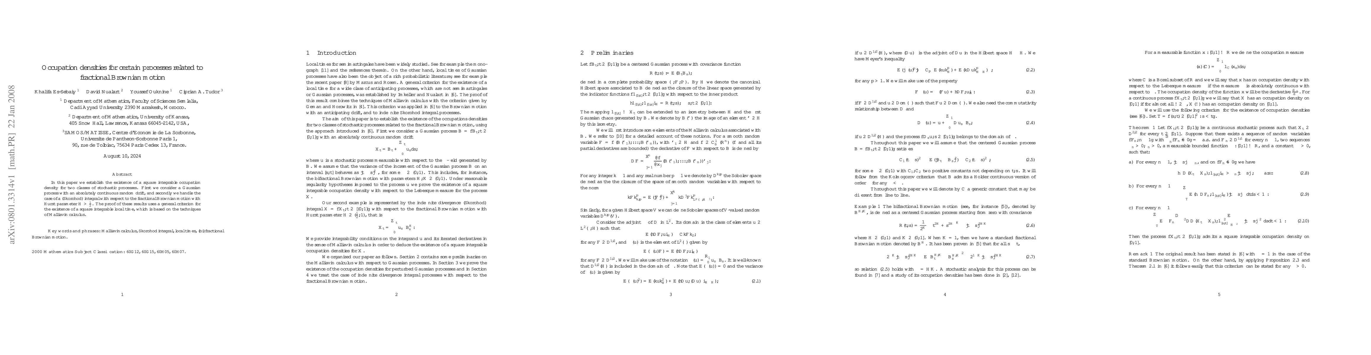 This paper establishes the existence of square integrable occupation densities for two classes of stochastic processes: a Gaussian process with an absolutely continuous random drift and a Skorohod integral with respect to fractional Brownian motion with Hurst parameter $H > \frac{1}{2}$. The proofs leverage a general criterion for square integrable local time based on Malliavin calculus techniques.