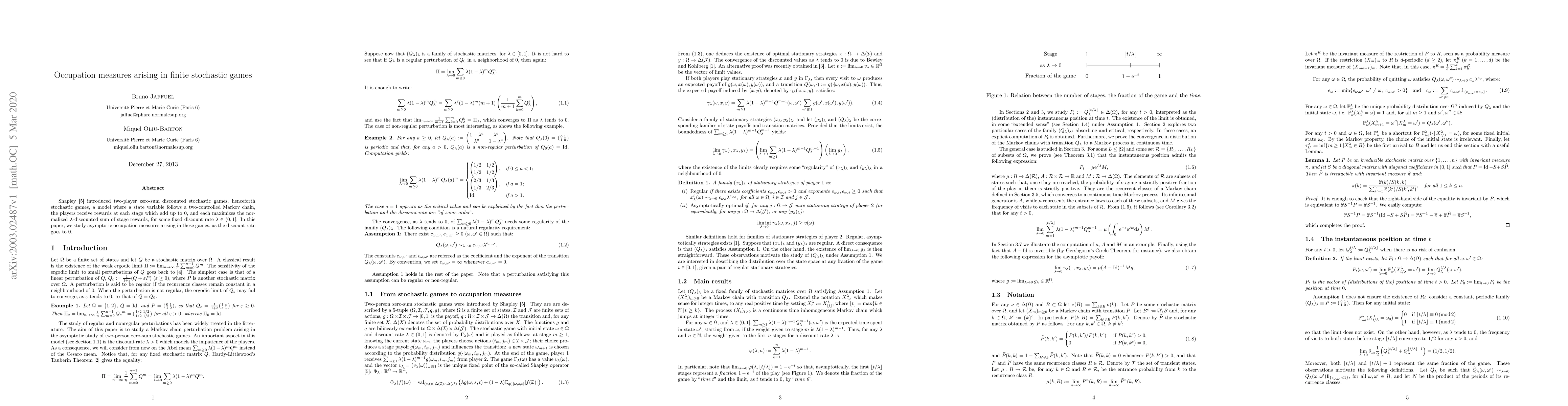 This research investigates asymptotic occupation measures in discounted stochastic games, introduced by Shapley (1953), focusing on their behavior as the discount rate approaches zero.
