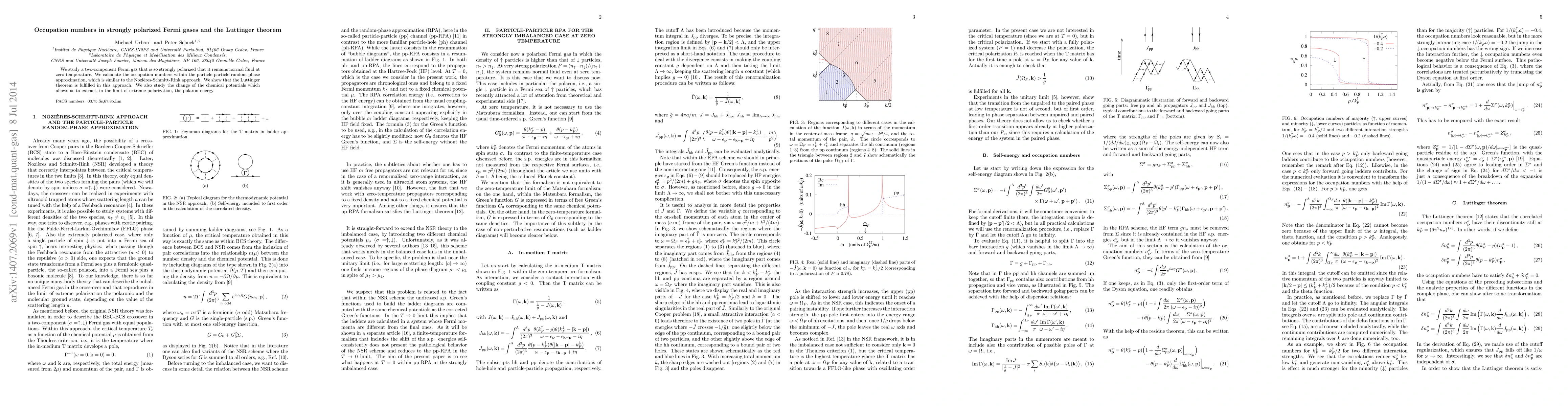 We study a two-component Fermi gas that is so strongly polarized that it remains normal fluid at zero temperature. We calculate the occupation numbers within the particle-particle random-phase approximation, which is similar to the Nozieres-Schmitt-Rink approach. We show that the Luttinger theorem is fulfilled in this approach. We also study the change of the chemical potentials which allows us to extract, in the limit of extreme polarization, the polaron energy.