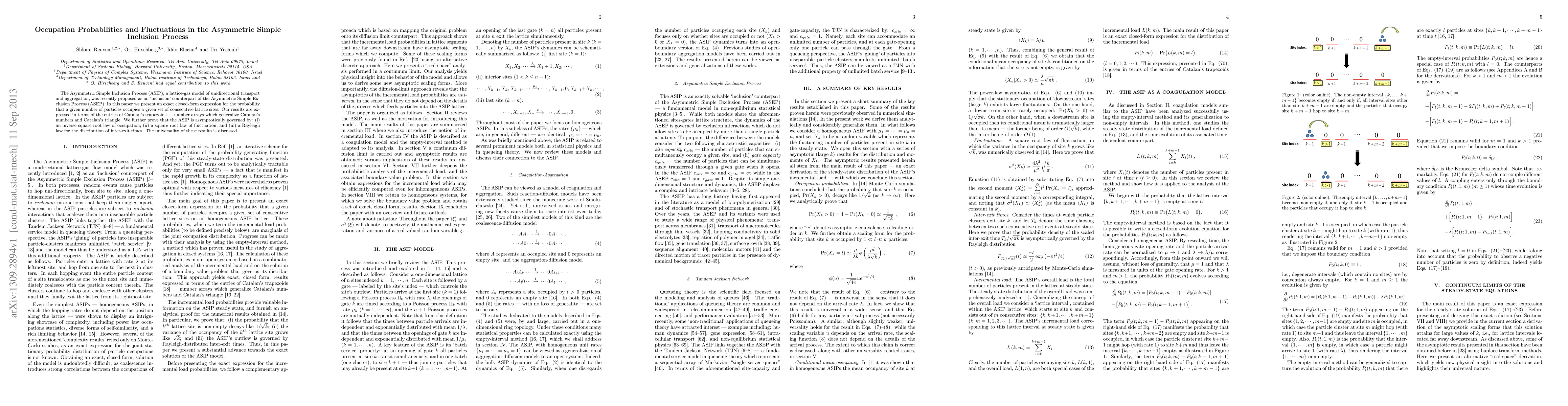 The Asymmetric Simple Inclusion Process (ASIP), a lattice-gas model of unidirectional transport and aggregation, was recently proposed as an `inclusion' counterpart of the Asymmetric Simple Exclusion Process (ASEP). In this paper we present an exact closed-form expression for the probability that a given number of particles occupies a given set of consecutive lattice sites. Our results are expressed in terms of the entries of Catalan's trapezoids --- number arrays which generalize Catalan's numbers and Catalan's triangle. We further prove that the ASIP is asymptotically governed by: (i) an inverse square root law of occupation; (ii) a square root law of fluctuation; and (iii) a Rayleigh law for the distribution of inter-exit times. The universality of these results is discussed.