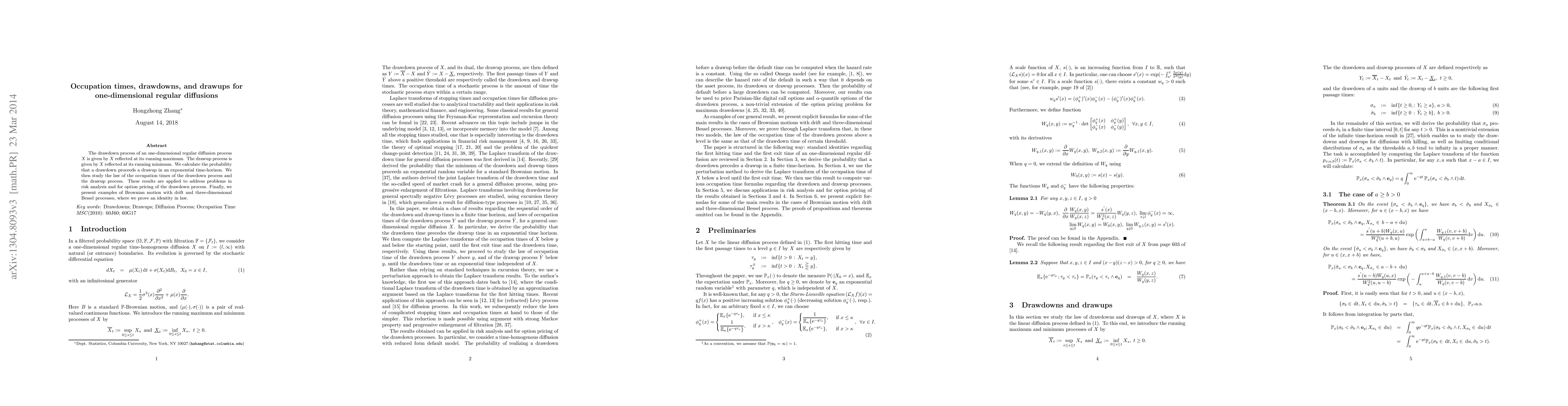Researchers studied one-dimensional regular diffusions, calculating probabilities of drawdowns leading to drawups and analyzing occupation times for risk analysis and option pricing purposes.