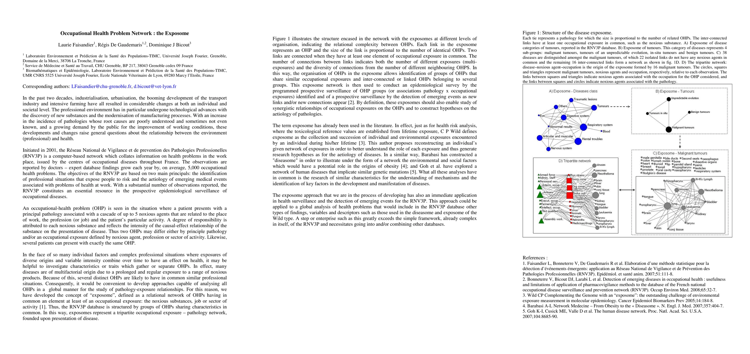 We present a thinking on the concept of relational networks applied to the french national occupational disease surveillance and prevention network (R\'eseau National de Vigilance et de Pr\'evention des Pathologies Professionnelles, RNV3P). This approach consists in searching common exposures to occupational health problems.
