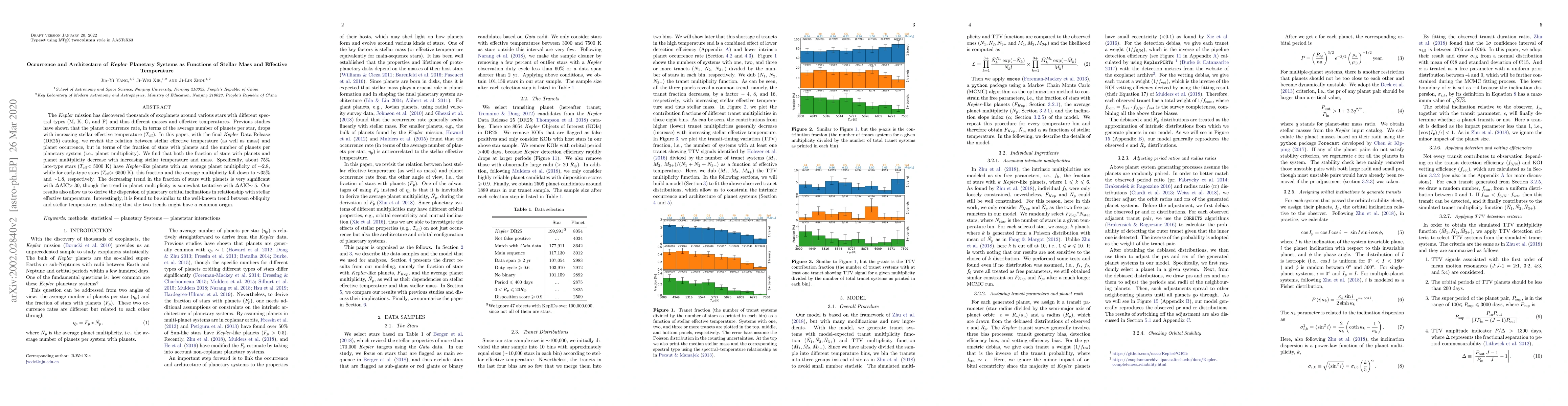 The study examines the relationship between stellar mass, effective temperature, and planetary system occurrence in Kepler exoplanet discoveries, finding that both factors decrease planet frequency and multiplicity with increasing temperature.