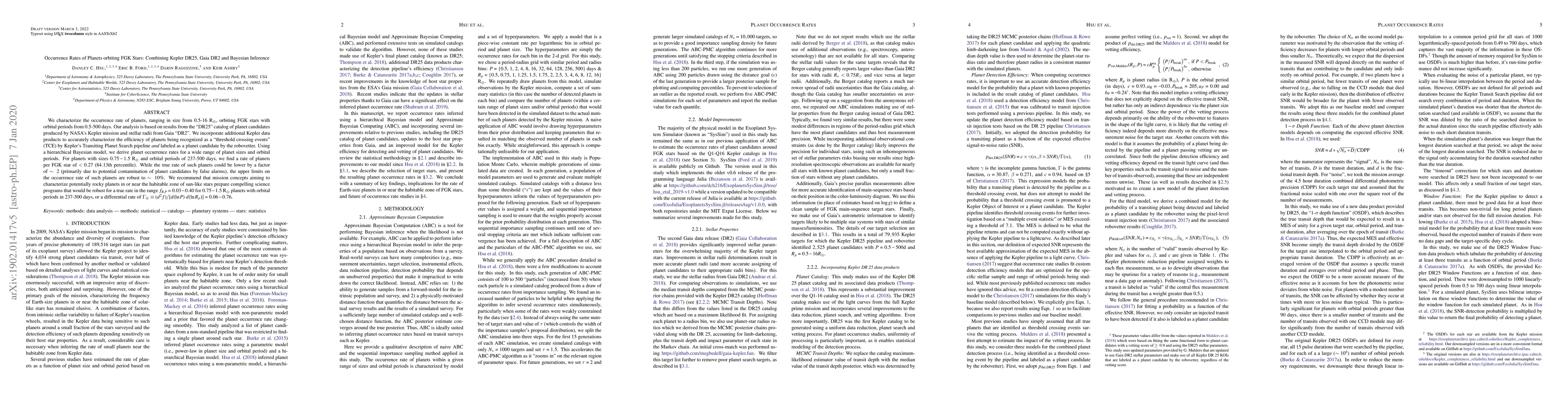 This paper combines Kepler DR25 and Gaia DR2 data to determine the occurrence rates of planets orbiting FGK stars, using Bayesian inference. The study finds that the occurrence rate for planets of size $0.75-1.5$ R$_\oplus$ with orbital periods of 237-500 days is less than $0.27$ per FGK star, with a recommended range of $0.03-0.40$ considering potential false alarms.