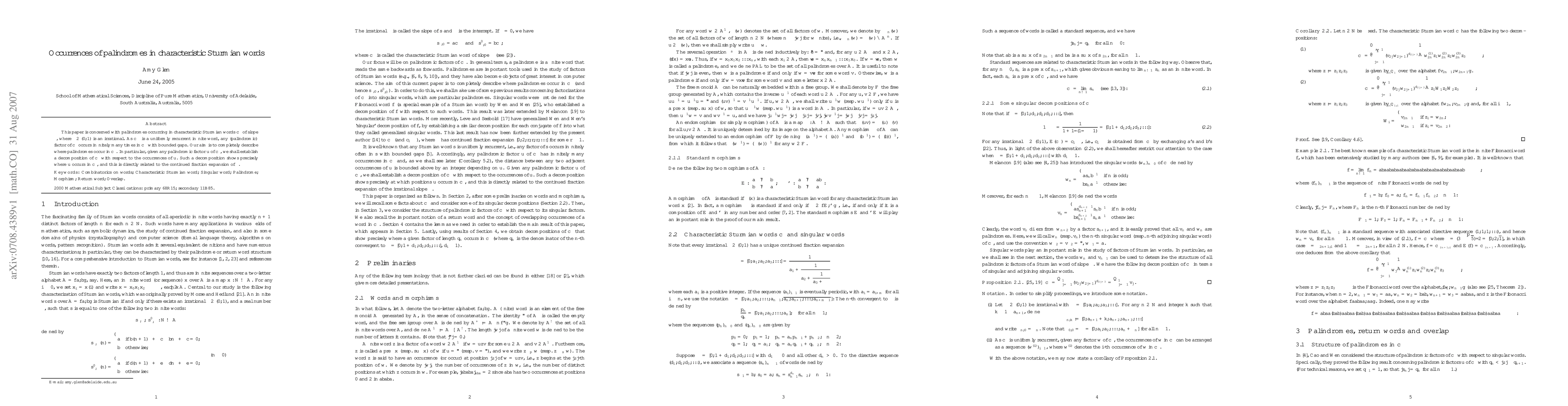The paper investigates the occurrences of palindromes in characteristic Sturmian words $c_\alpha$ for irrational slope $\alpha \in (0,1)$, using continued fraction expansion of $\alpha$ to describe where palindromes occur.