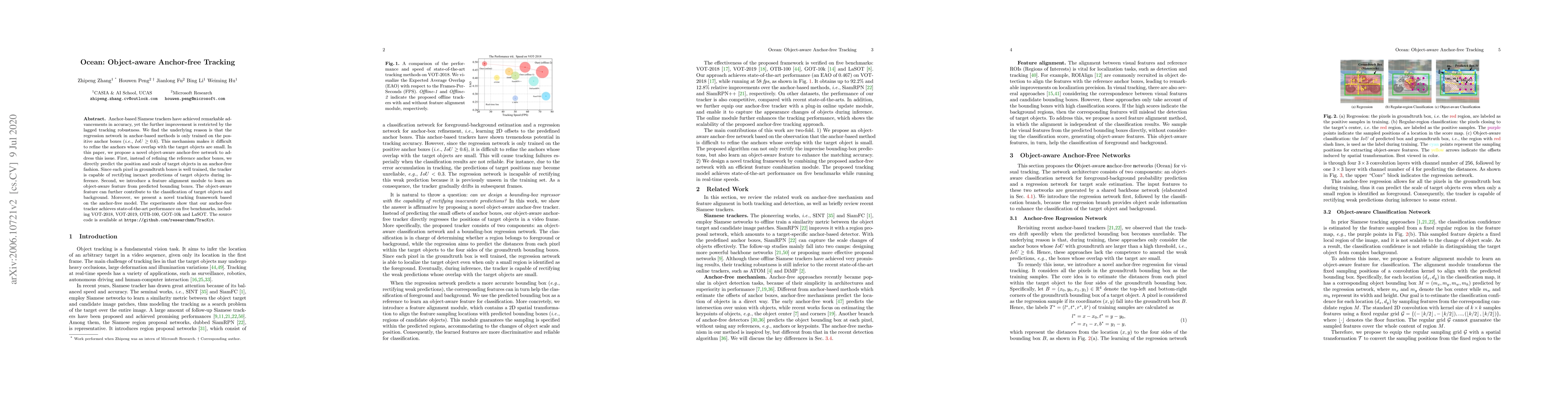 This paper proposes an object-aware anchor-free tracking method that directly predicts target object positions and scales without refining anchor boxes, leading to improved tracking robustness. The method includes a feature alignment module to enhance object-aware features, achieving state-of-the-art performance on multiple benchmarks.