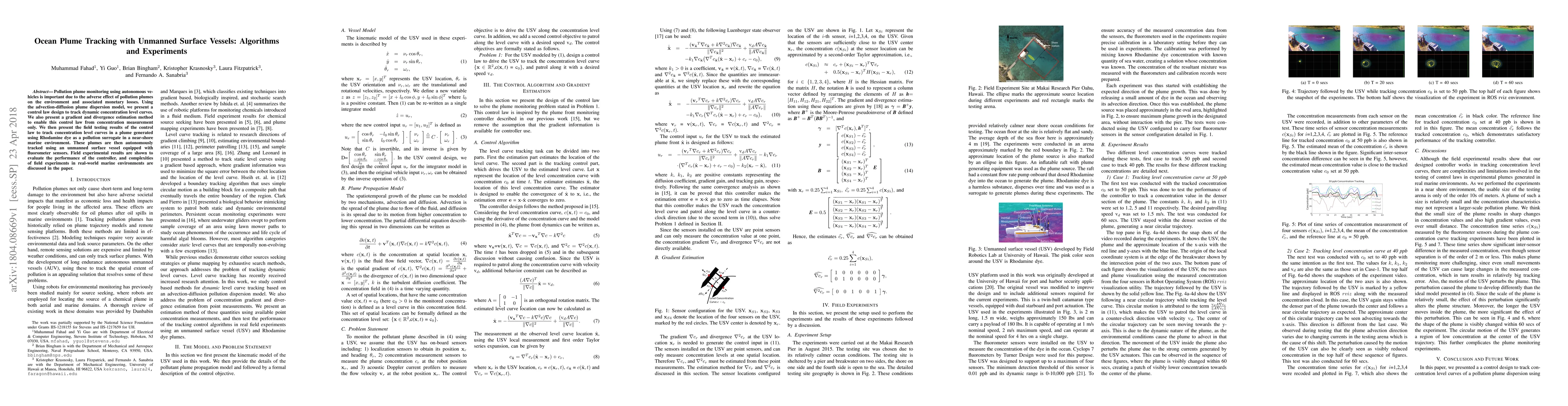 Researchers developed a control law to track ocean pollution plumes using unmanned surface vessels equipped with fluorometer sensors, demonstrating its effectiveness in real-world marine environments.