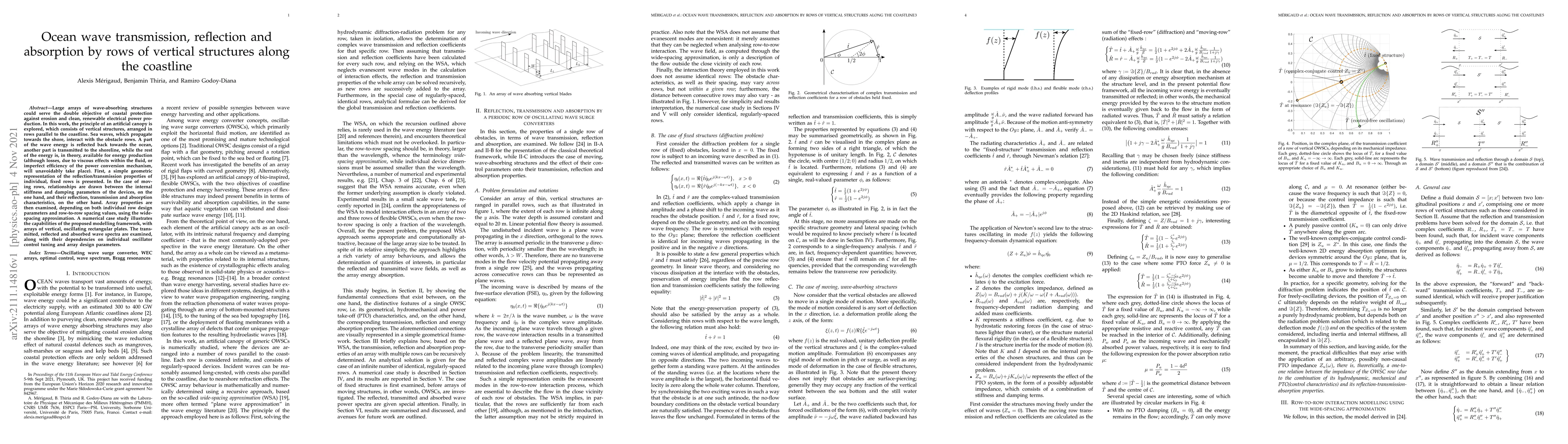 This paper explores the interaction of ocean waves with rows of vertical structures along the coastline for dual purposes: coastal erosion protection and renewable energy production. It examines the reflection, transmission, and absorption of wave energy by these structures, analyzing both static and dynamic configurations to optimize wave management and energy capture.