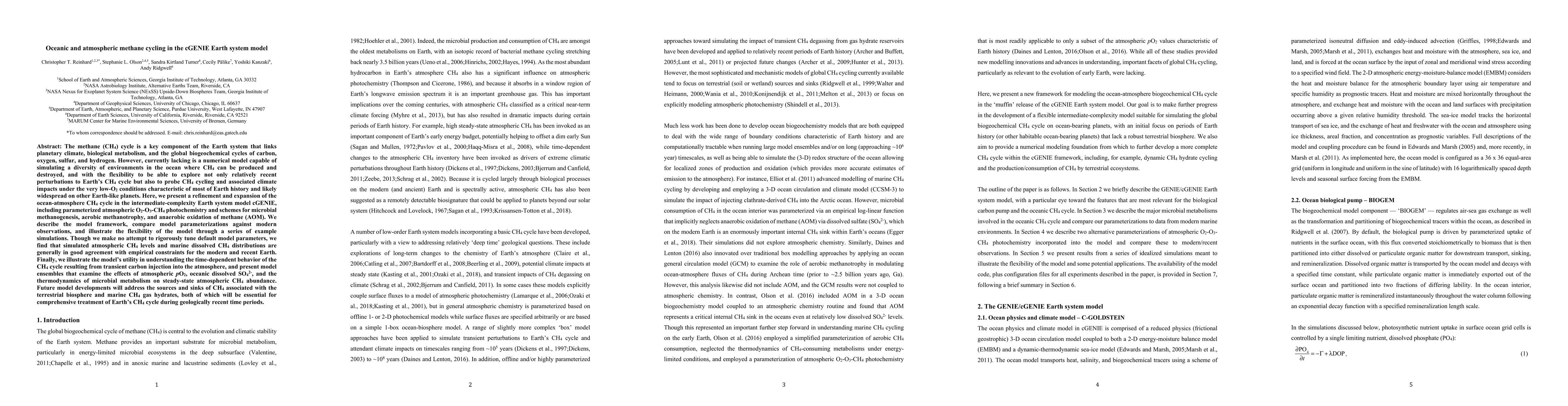 This paper introduces an expanded ocean-atmosphere methane cycle in the cGENIE Earth system model, incorporating photochemistry and microbial processes. The model shows good agreement with modern observations and demonstrates its utility in simulating methane cycling and climate impacts under various conditions.