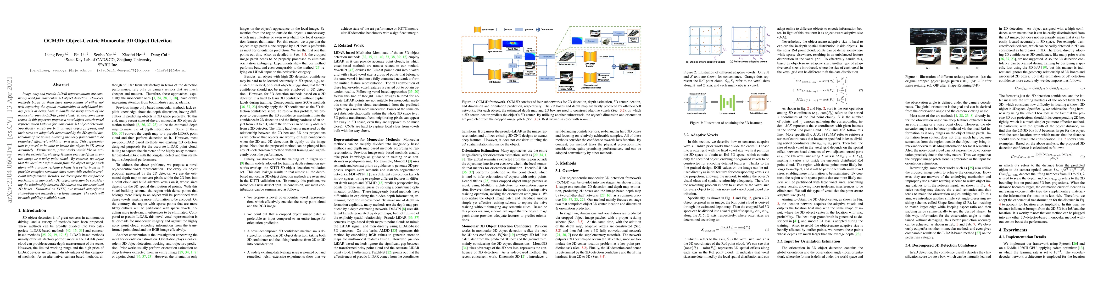 This paper introduces OCM3D, a novel object-centric voxel representation for monocular 3D object detection that adaptively organizes noisy point clouds within voxel grids, accurately locating objects in 3D space. It argues that local RoI information from object patches, rather than entire images, provides better orientation estimates and decomposes the detection confidence mechanism through the relationship between 3D objects and 2D boxes, outperforming other methods on the KITTI dataset.