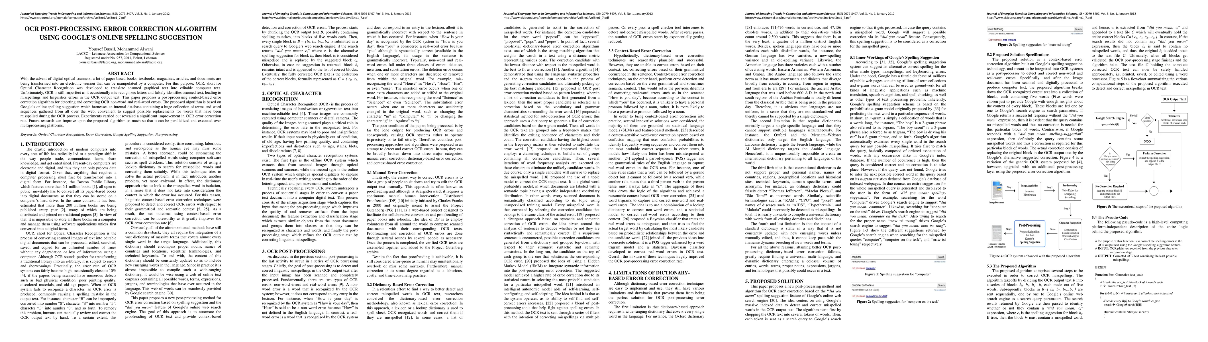 This paper proposes a post-processing error correction algorithm using Google's online spelling suggestions to improve OCR accuracy by detecting and correcting both non-word and real-word errors. Experiments show significant improvements in error correction rates, with future work focusing on parallelization for enhanced performance.