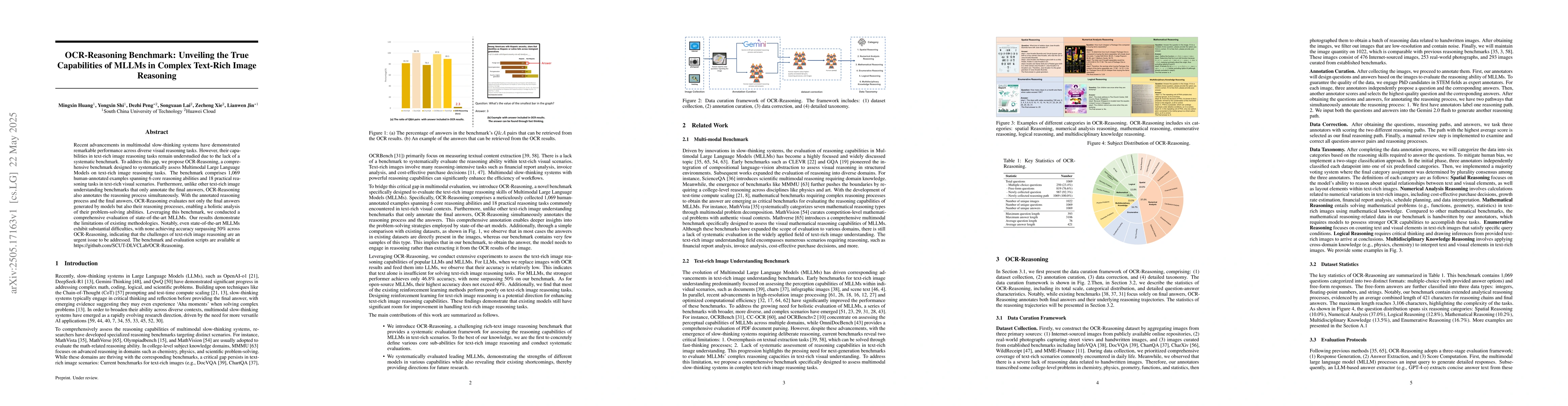 A new benchmark, OCR-Reasoning, evaluates MLLMs on complex text-rich image reasoning tasks, highlighting their limitations in solving problems with accuracy rates below 50%.