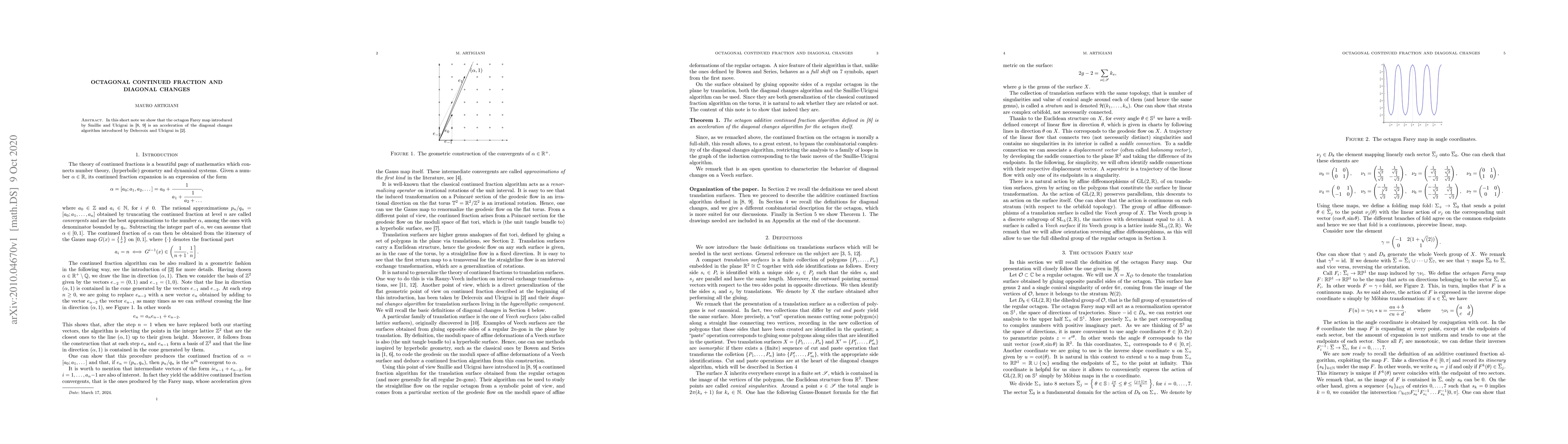 In this short note we show that the octagon Farey map introduced by Smillie and Ulcigrai is an acceleration of the diagonal changes algorithm introduced by Delecroix and Ulcigrai.