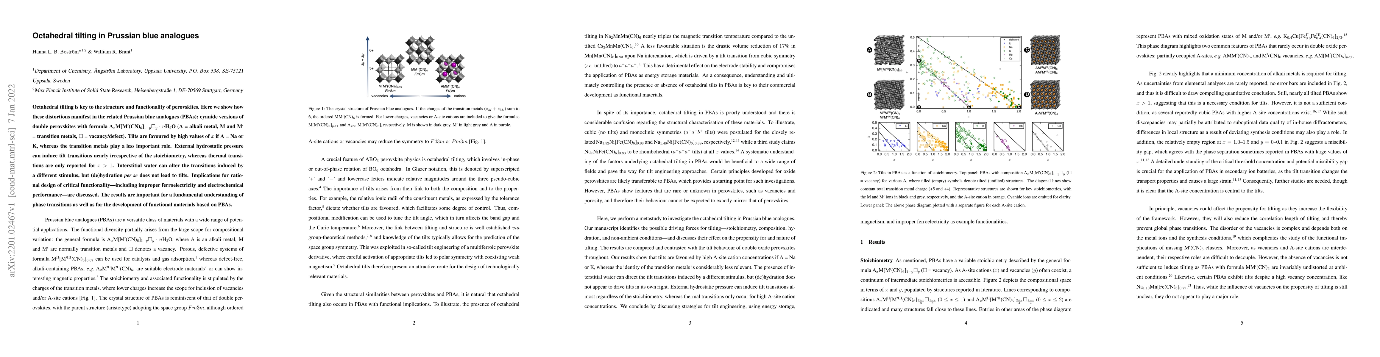 This study investigates octahedral tilting in Prussian blue analogues (PBAs), revealing that high alkali metal content (Na or K) favors tilts, while external pressure can induce tilt transitions regardless of stoichiometry. The research highlights the implications for designing PBAs with desired functionalities, including ferroelectricity and electrochemical performance.