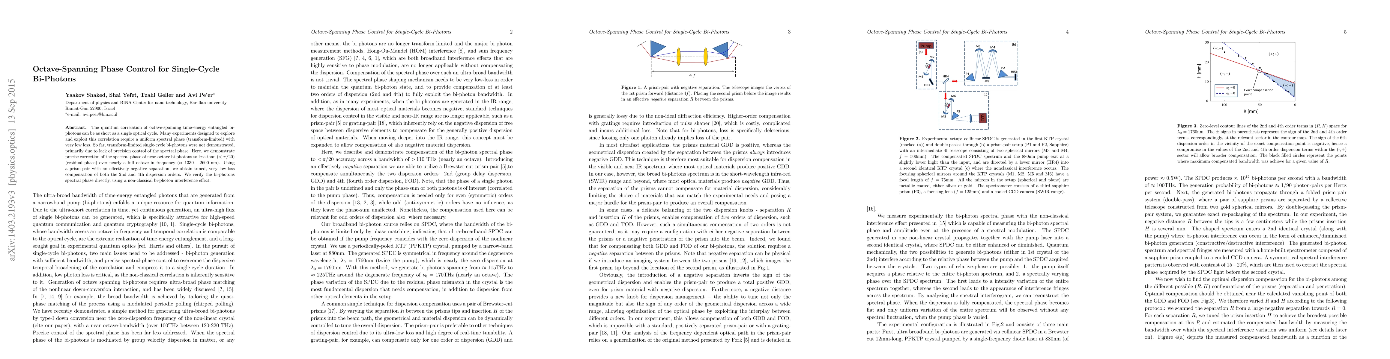 This paper demonstrates precise control over the spectral phase of octave-spanning bi-photons, achieving transform-limited single-cycle correlations with minimal loss. The authors utilize a prism-pair technique to correct both the 2nd and 4th dispersion orders, verifying the phase correction through a non-classical interference effect.