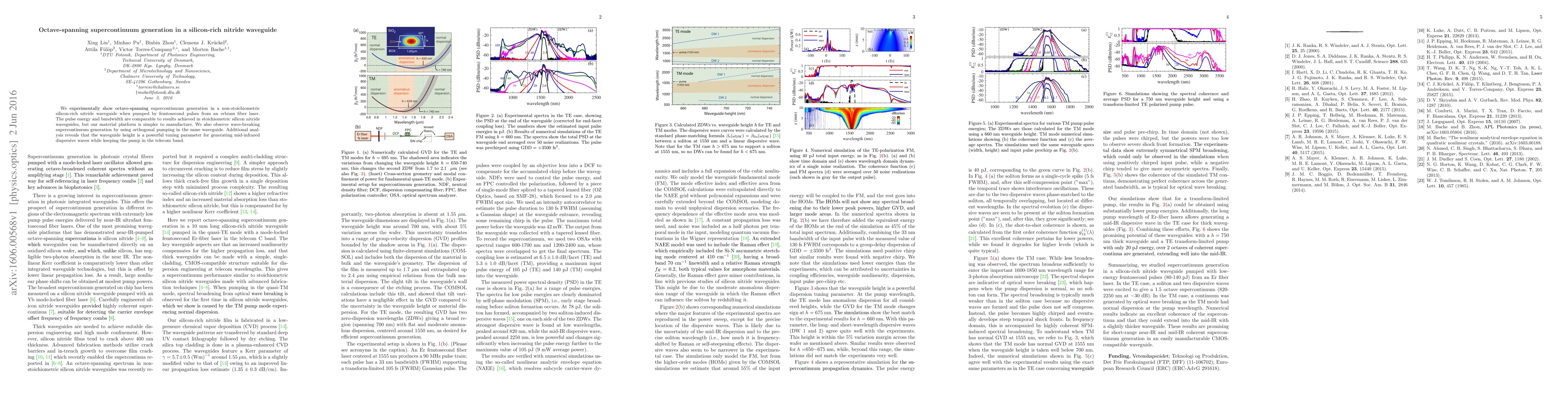 The research demonstrates octave-spanning supercontinuum generation in silicon-rich nitride waveguides pumped by femtosecond pulses, showing comparable results to stoichiometric silicon nitride but with simpler fabrication. The study also highlights the waveguide height as a key parameter for mid-infrared dispersive wave generation.
