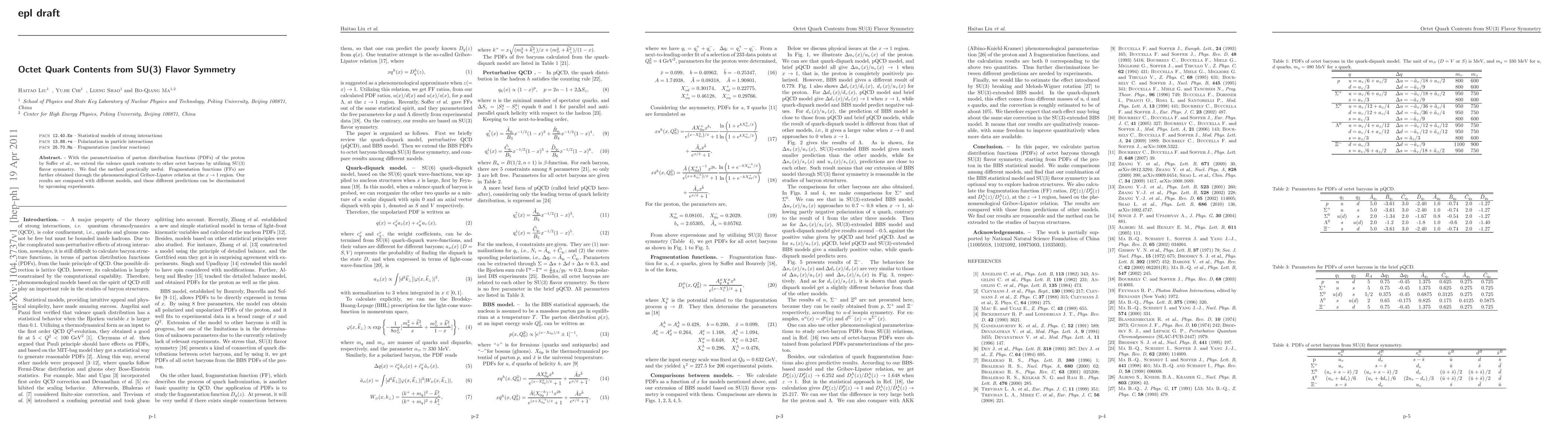 The paper presents a systematic extension of parton distribution functions (PDFs) for octet baryons from the proton's PDFs using SU(3) flavor symmetry, along with fragmentation function calculations at the x → 1 region.