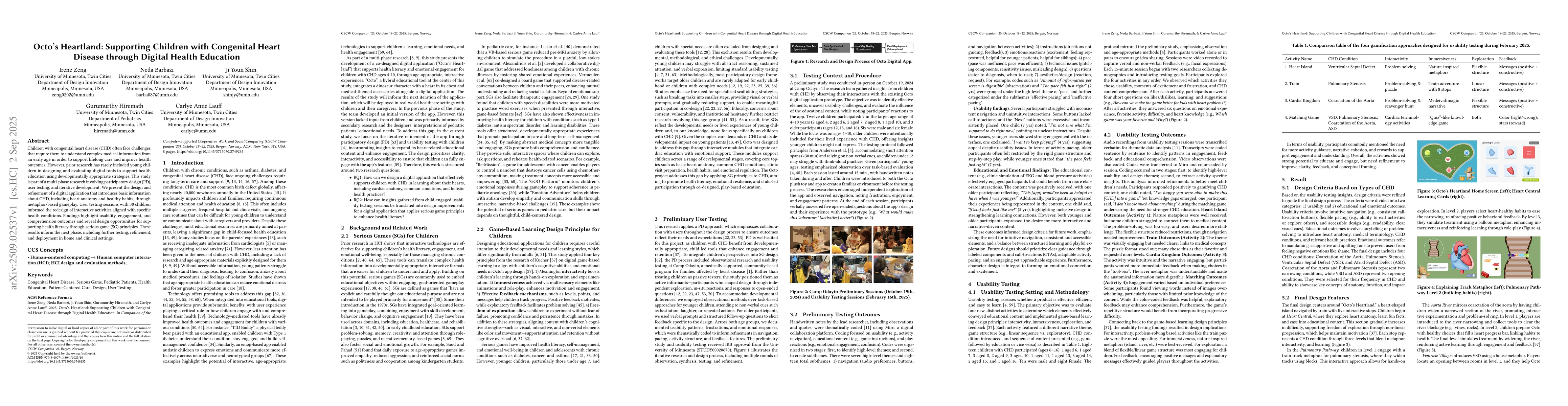 Children with congenital heart disease (CHD) often face challenges that require them to understand complex medical information from an early age in order to support lifelong care and improve health outcomes. However, prior research has rarely included young children in designing and evaluating digital tools to support health education using developmentally appropriate strategies. This study is part of a multi-phase research involving participatory design (PD), user testing, and iterative development. We present the design and refinement of a digital application that introduces basic information about CHD, including heart anatomy and healthy habits, through metaphor-based gameplay. User testing sessions with 30 children informed the redesign of interactive activities aligned with specific health conditions. Findings highlight usability, engagement, and comprehension outcomes and reveal design opportunities for supporting health literacy through serious game (SG) principles. These results inform the next phase, including further testing, refinement, and deployment in home and clinical settings.