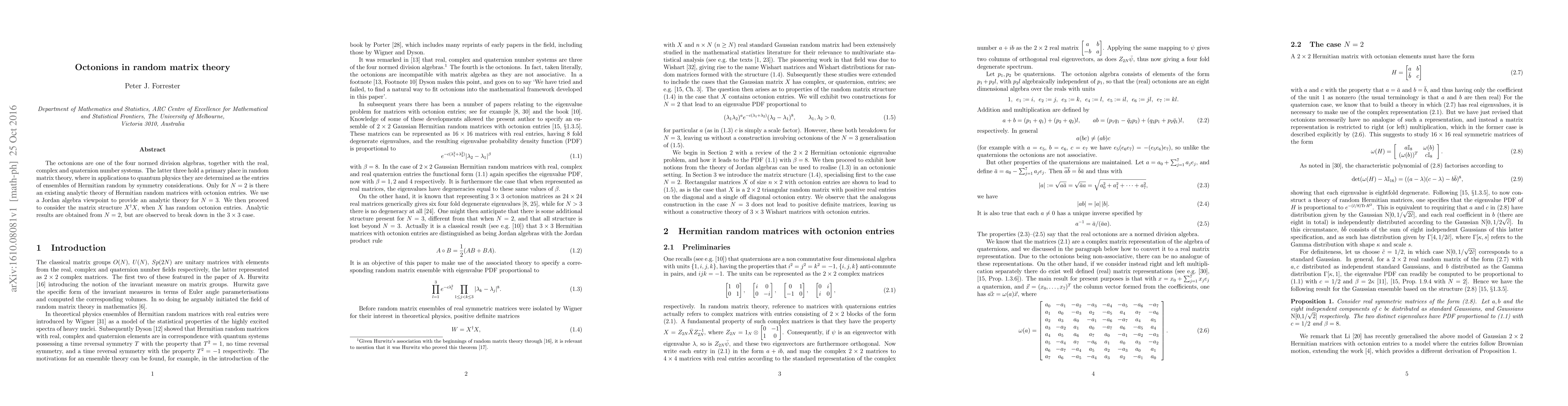 The octonions are one of the four normed division algebras, together with the real, complex and quaternion number systems. The latter three hold a primary place in random matrix theory, where in applications to quantum physics they are determined as the entries of ensembles of Hermitian random by symmetry considerations. Only for $N=2$ is there an existing analytic theory of Hermitian random matrices with octonion entries. We use a Jordan algebra viewpoint to provide an analytic theory for $N=3$. We then proceed to consider the matrix structure $X^\dagger X$, when $X$ has random octonion entries. Analytic results are obtained from $N=2$, but are observed to break down in the $3 \times 3$ case.