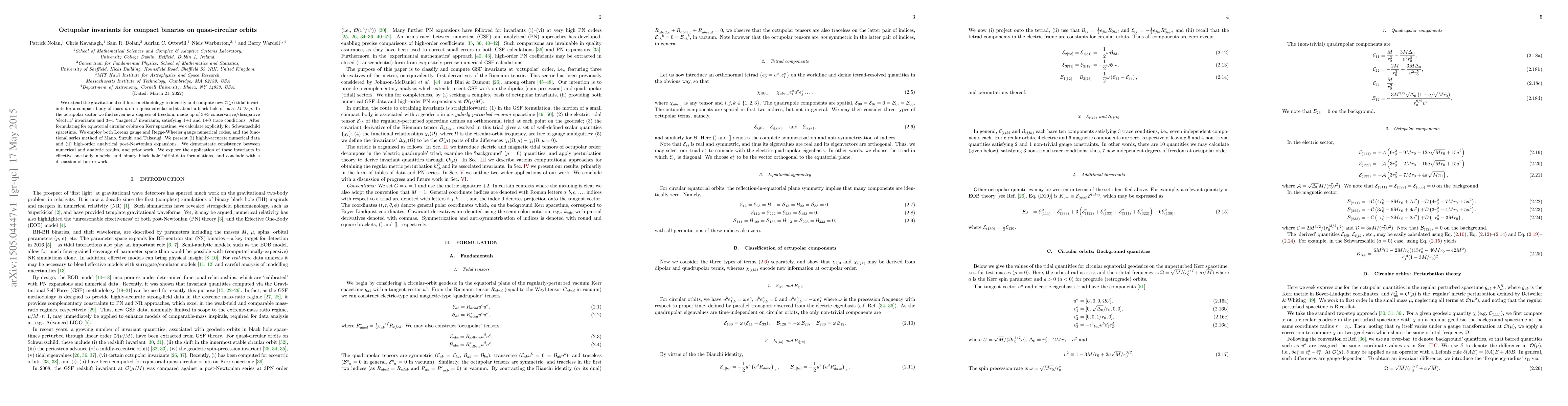 We extend the gravitational self-force methodology to identify and compute new $O(\mu)$ tidal invariants for a compact body of mass $\mu$ on a quasi-circular orbit about a black hole of mass $M \gg \mu$. In the octupolar sector we find seven new degrees of freedom, made up of 3+3 conservative/dissipative `electric' invariants and 3+1 `magnetic' invariants, satisfying 1+1 and 1+0 trace conditions. After formulating for equatorial circular orbits on Kerr spacetime, we calculate explicitly for Schwarzschild spacetime. We employ both Lorenz gauge and Regge-Wheeler gauge numerical codes, and the functional series method of Mano, Suzuki and Takasugi. We present (i) highly-accurate numerical data and (ii) high-order analytical post-Newtonian expansions. We demonstrate consistency between numerical and analytic results, and prior work. We explore the application of these invariants in effective one-body models, and binary black hole initial-data formulations, and conclude with a discussion of future work.