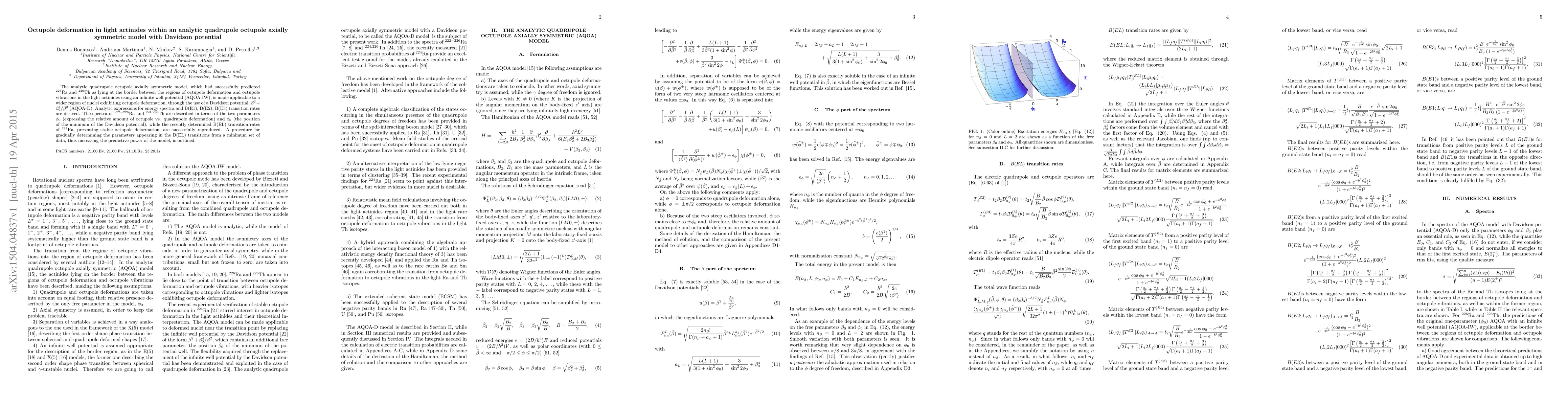 This paper extends the analytic quadrupole octupole axially symmetric model using a Davidson potential for light actinides, successfully predicting octupole deformation and reproducing B(EL) transition rates for 224Ra. The model's predictive power is enhanced by determining parameters from minimal data.