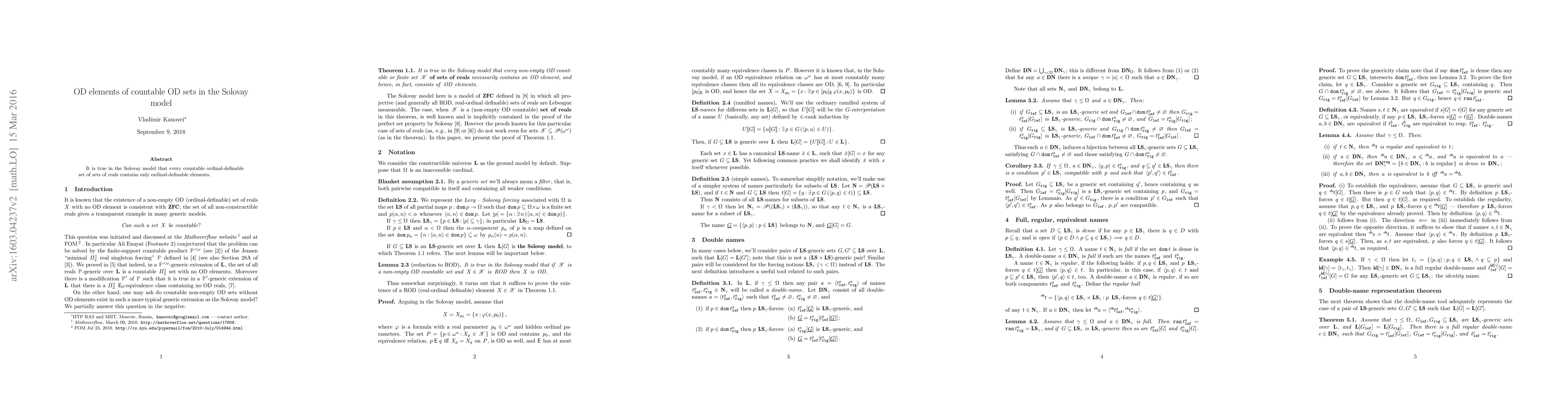 Summary: In the Solovay model, any countable set of sets of reals that is ordinal-definable itself consists entirely of ordinal-definable elements. This demonstrates a property of ordinal definability within this specific mathematical model.